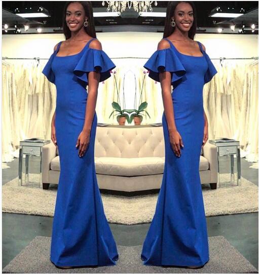 Royal Blue Mermaid Prom Dresses 2018 Scoop Short Sleeve Long Party Gowns Evening Dresses