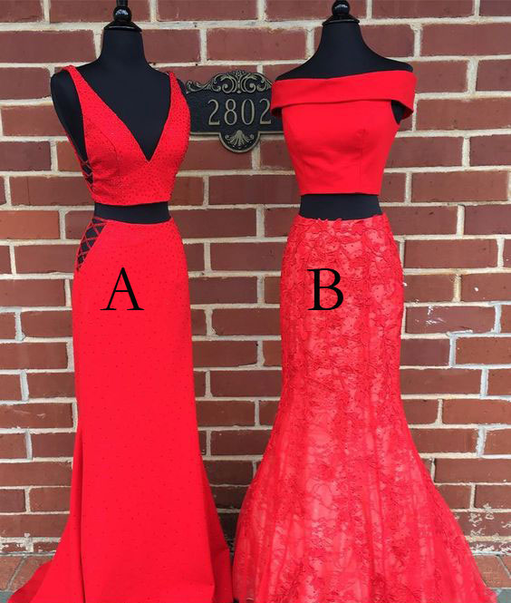 Off the Shoulder A/B Two Piece Red Prom Dresses Evening Formal Gowns