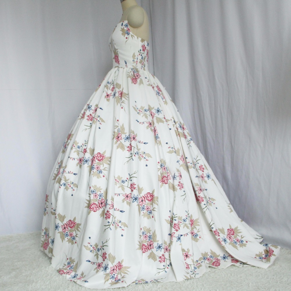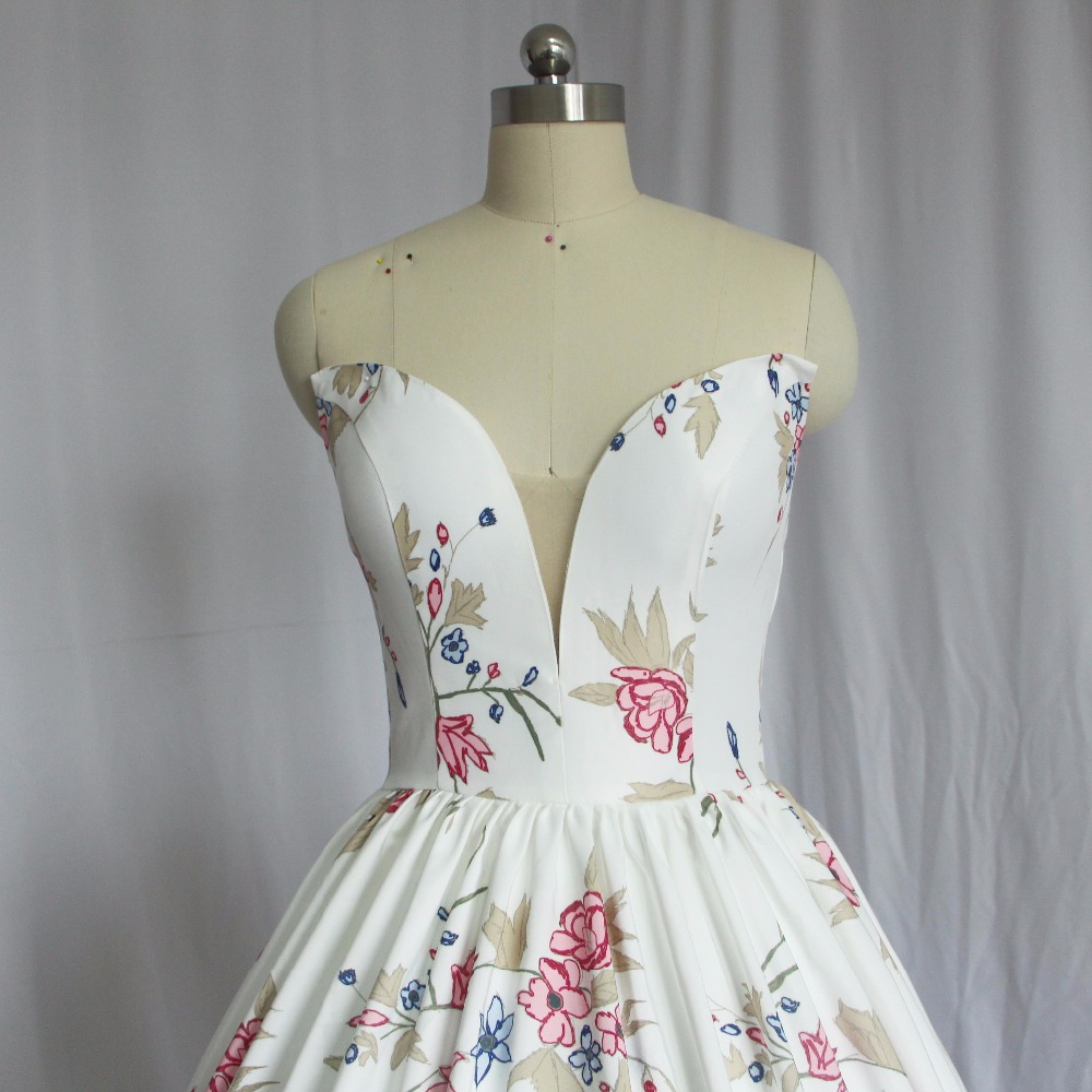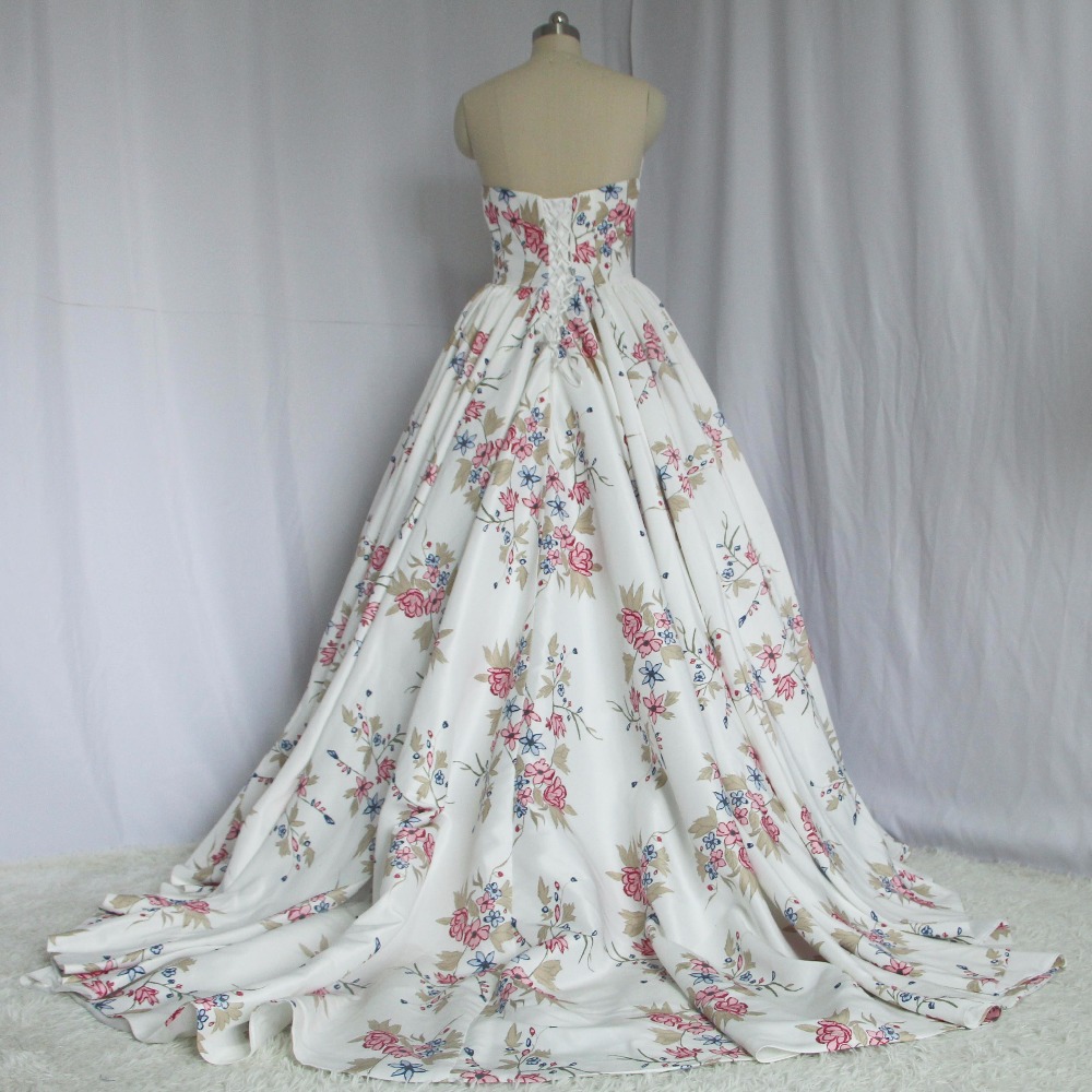 2018 Spring Off the Shoulder Sweetheart Sleeveless Print Flowers Pleated Lace Up A Line Prom Dresses