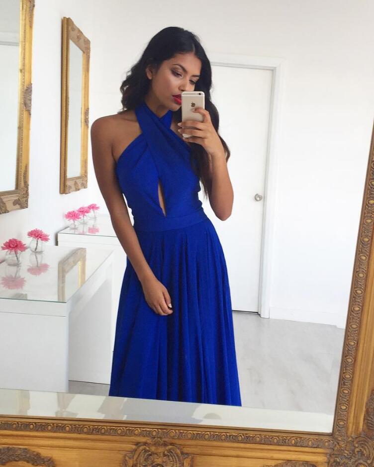 Sexy Sleeveless Prom Dress, Royal Blue Tulle Prom Dresses, Long Evening Dress