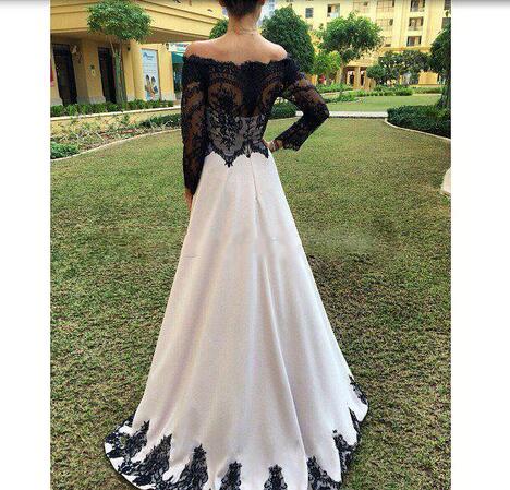 2018 Sexy Off The Shoulder Prom Dresses With Black Lace Appliqued Long Evening Party vestido de festa longo de luxo