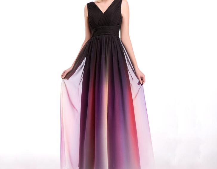 A Line Chiffon Print Floral Prom Dresses Sexy Deep V Neck Evening Formal Gowns