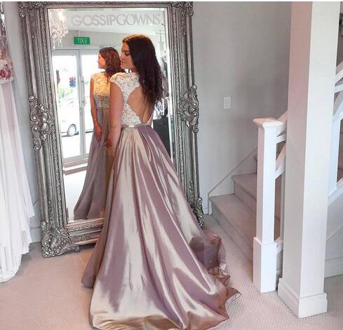 Satin A-line Long Prom Dresses Vestido De Festa Sexy Backless Top Appliques Beads Prom Party Gowns Hot Sales Evening Dresses
