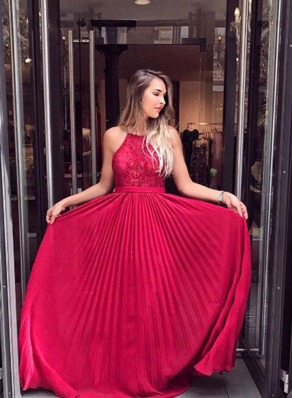 Charming A-Line Halter Red Long Prom/Evening Dress With Lace