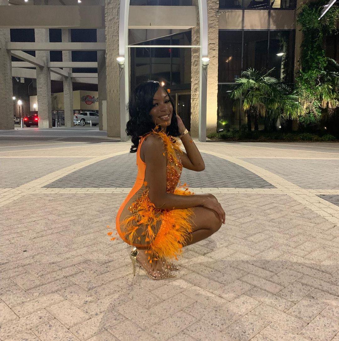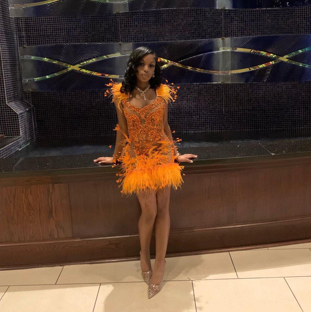 Orange Mini Short Lace Feathers African Prom Dress Evening Dress