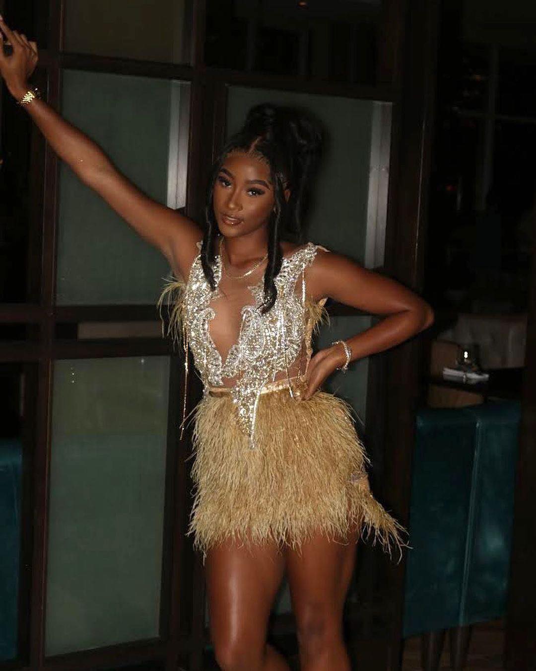 Yellow Mini Short Lace Feathers African Prom Dress Evening Dress