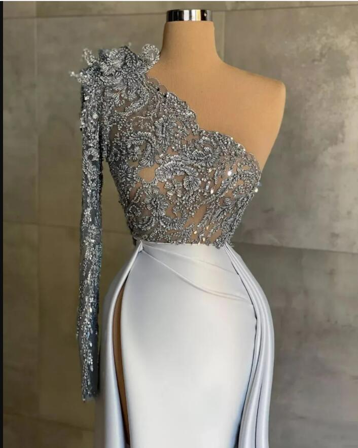 Sliver Lace Sheath Prom Dress Eveni ng Dress
