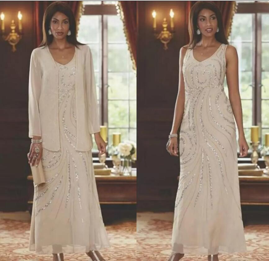 Elegant Mother of the Bride Dresses with Jacket Beading Sequins Wedding Guest Gowns Ankle Length Plus Size Mother's Dress