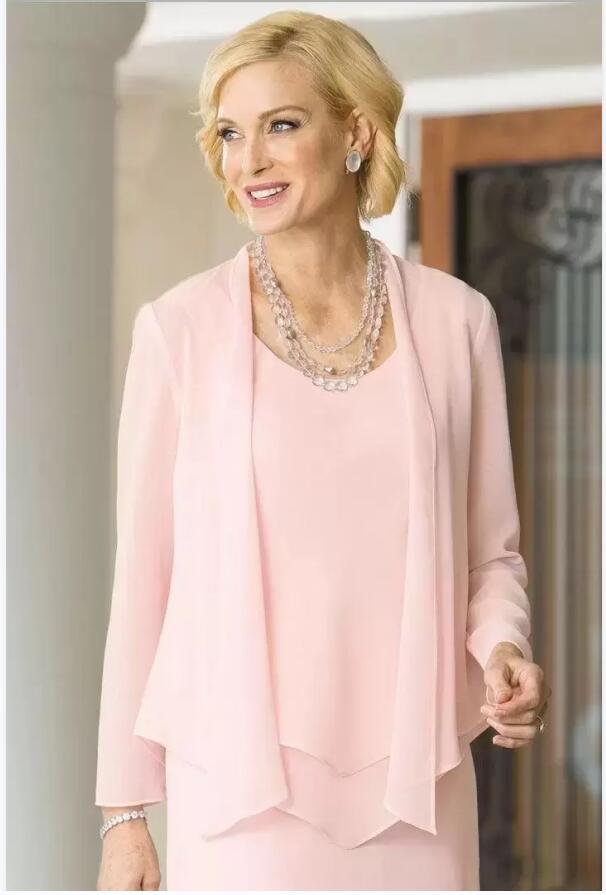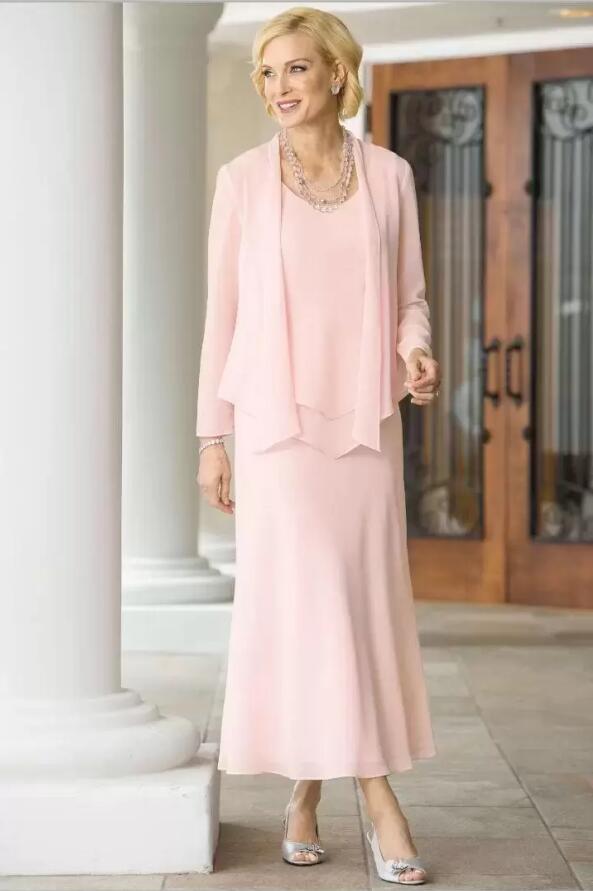 Pink Mother Of The Bride Dresses Three Pieces Chiffon Wedding Guest Dress Plus Size Ankle Length Evening Gowns