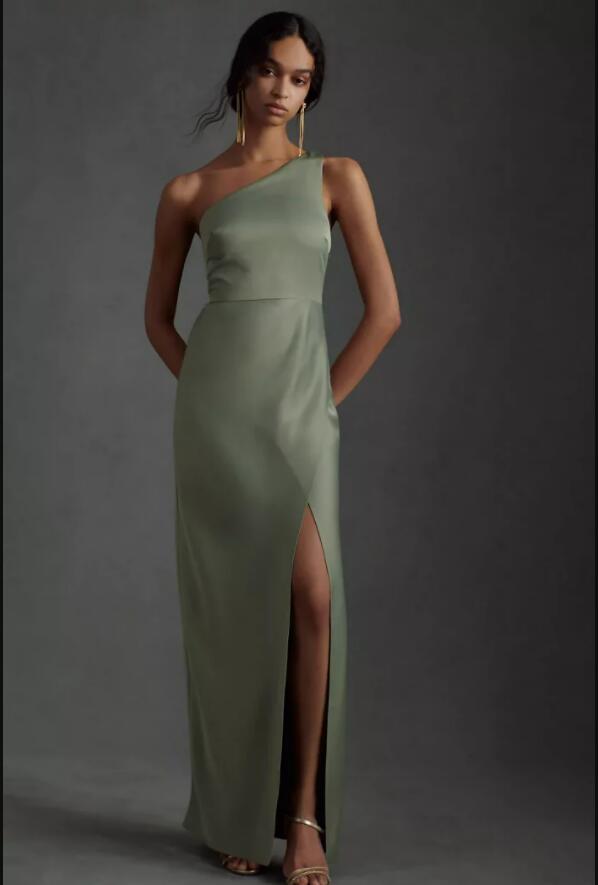 Olive Green One Shoulder Mother of Bride/Groom Dress