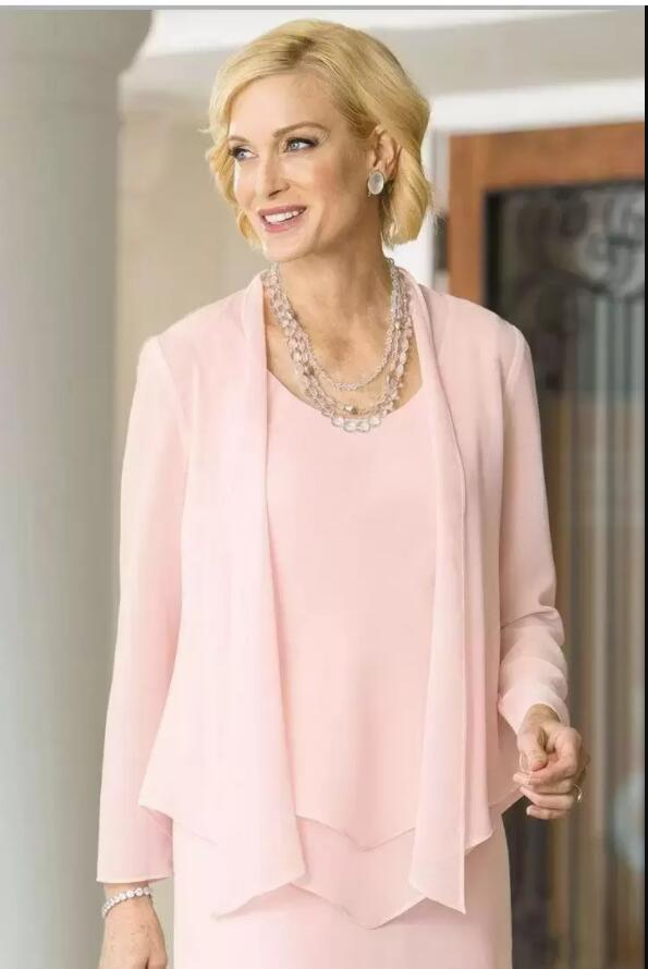 Pink Mother Of The Bride Dresses Three Pieces Chiffon Wedding Guest Dress Plus Size Ankle Length Evening Gowns