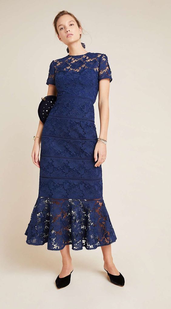Eleghant Sheath Royal Blue Lace Tea-length Mother of Bride/Groom Dress