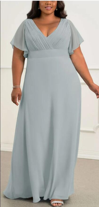 Light Blue Chiffon Plus Size Mother of Bride/Groom Dress Evening Dress