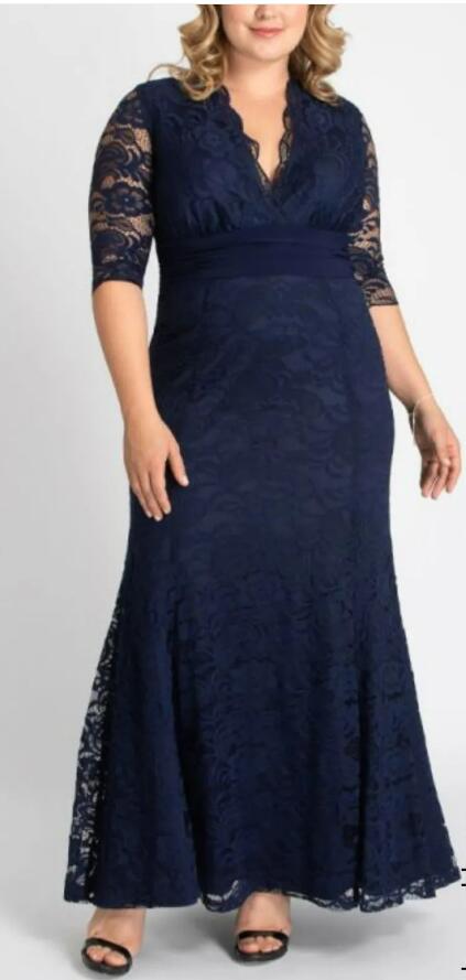 Navy Blue Lace Plus Size Mother of Bride/Groom Dress Evening Dress