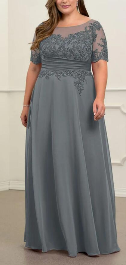 Grey Chiffon Lace Plus Size Mother of Bride/Groom Dress Evening Dress