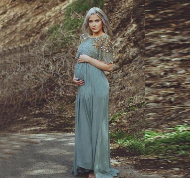 Vintage Chiffon Long Prom Dresses For Pregnant Women 2017 Short Sleeves Beading Crystal A Line Evening Gowns Vestido Party Custom