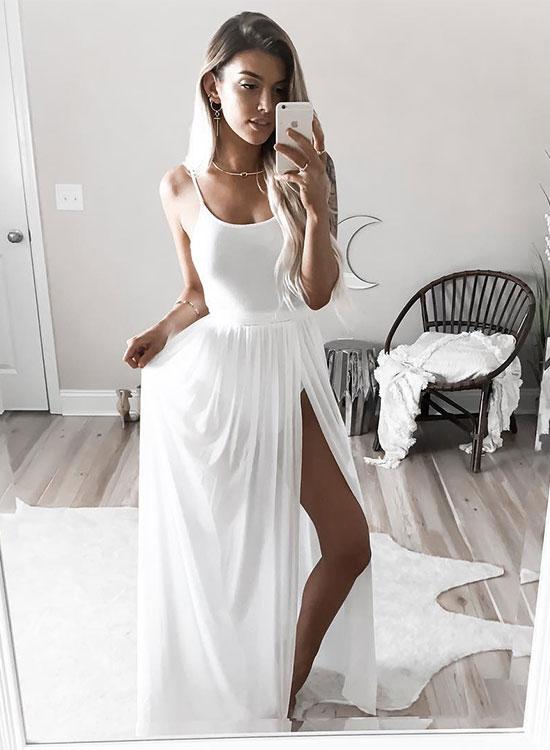 Simple white long prom dress,white evening dress