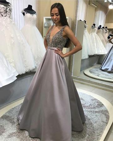 Charming V Neck Beaded Crystal Prom Dress, Sexy Floor Length Long Prom Dresses, 2018 Evening Party Dress