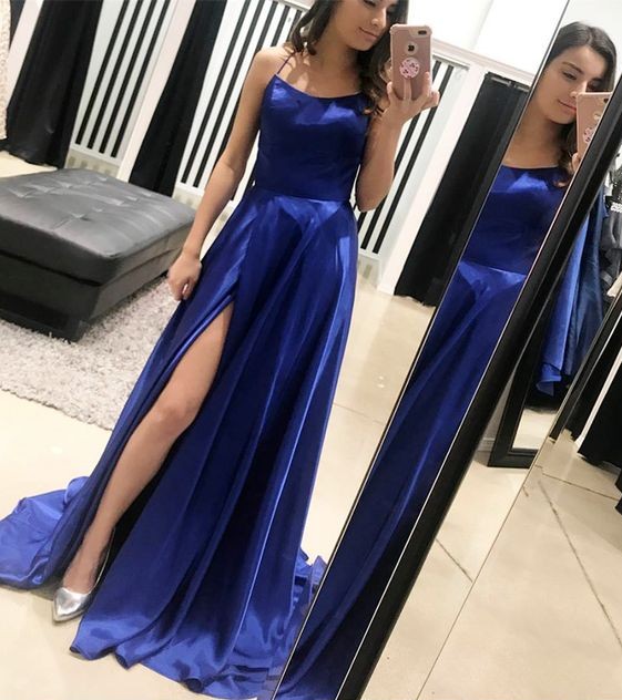 Royal Blue Long Prom Dress, 2018 Long Prom Dress, Elegant Long Prom Dresses, Backless Prom Dress, Prom Dress with Slit