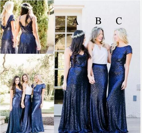 2018 Royal Blue Sequined Long Bridesmaid Dresses Boho Country Style Short Sleeves Mermaid Maid Of Honor Gowns Wedding Party Wear