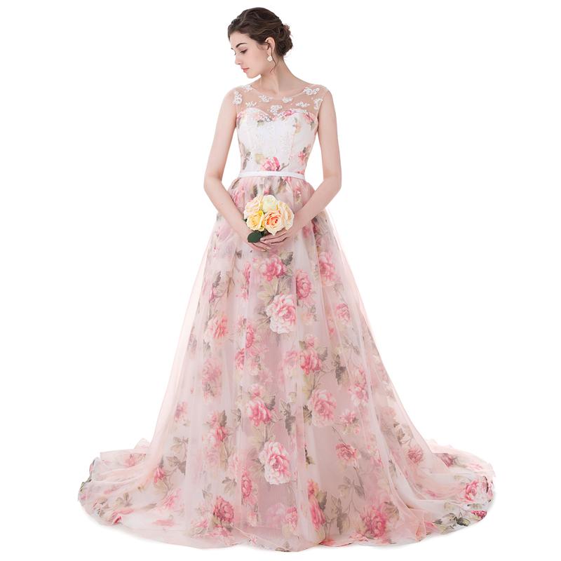 Real Photos Pattern Organza Peach Color Ball Gown Wedding Dresses Long Sleeveless Women Bridal Gowns