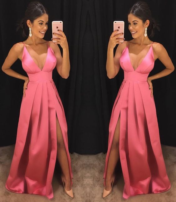 pink prom dress,long evening gowns,satin prom dress,satin bridesmaid dress