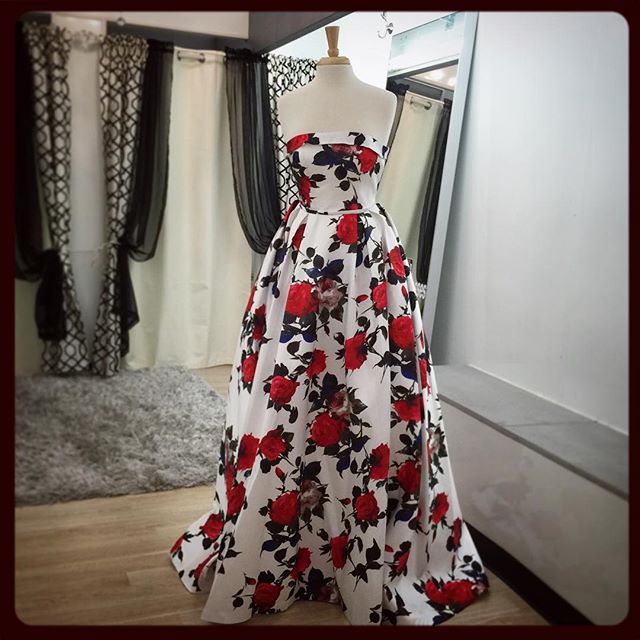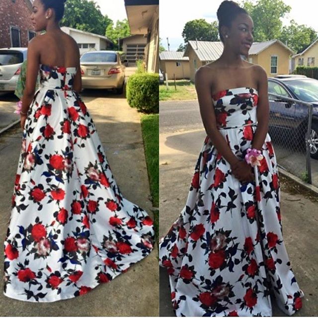 Prom Dress, Strapless Prom Dress, Floral Print Prom Dress, A-line Prom Dress, Flower Print Prom Dress, Long Prom Dress, Floor-length Prom Dress