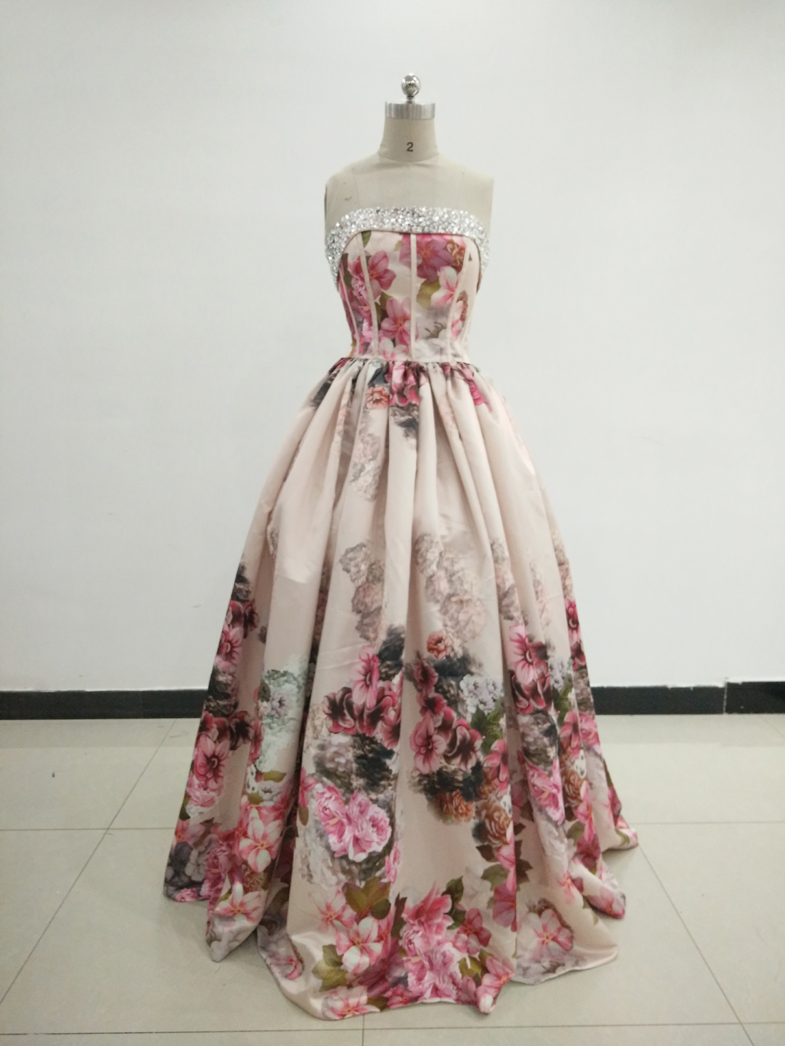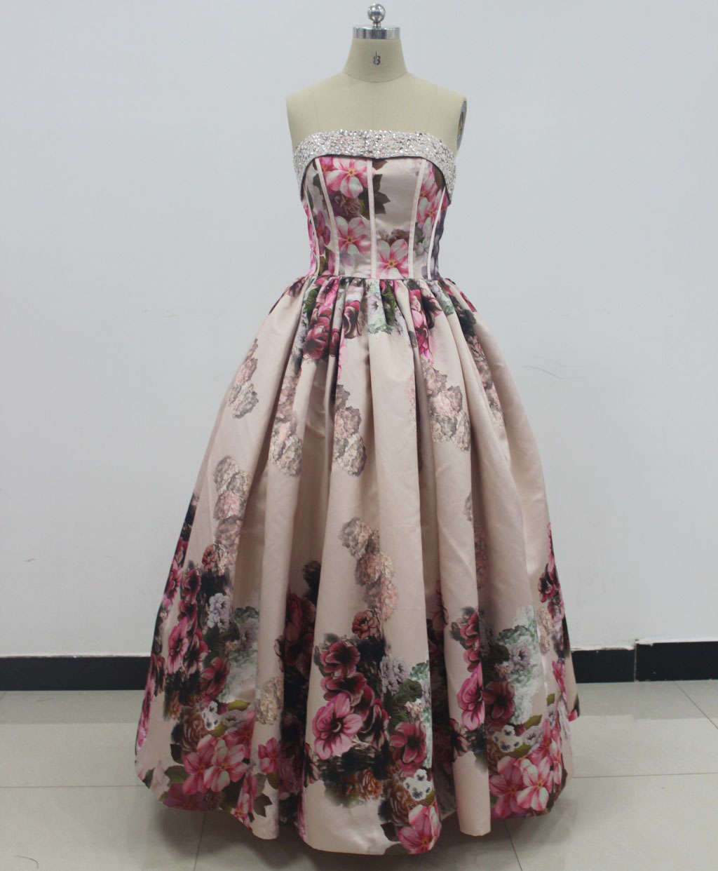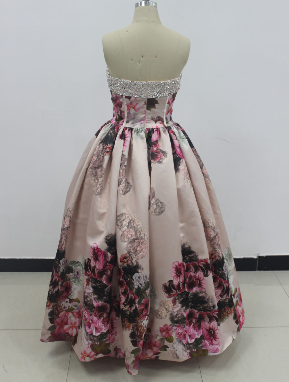Charming Print Dress Beaded Sweetheart Neckline Floral Strapless Formal Dresses - Evening Gowns, Floral Print Prom Dresses