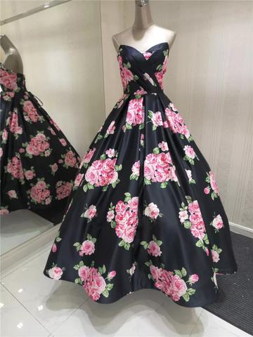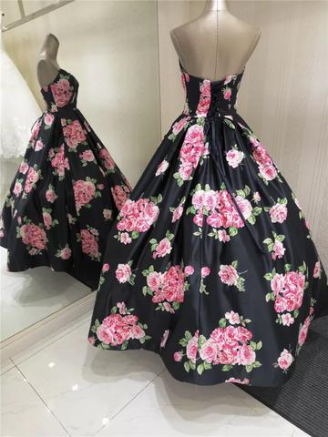 Exquisite Vintage Floral Flower Strapless Ball Gowns Prom Evening Dress