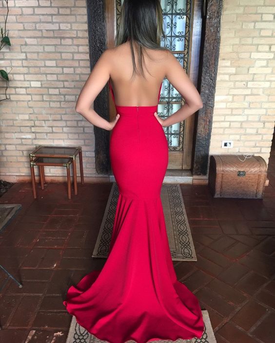 Red Mermaid High Neck Prom Dresses Satin Cutout Evening Formal Gowns