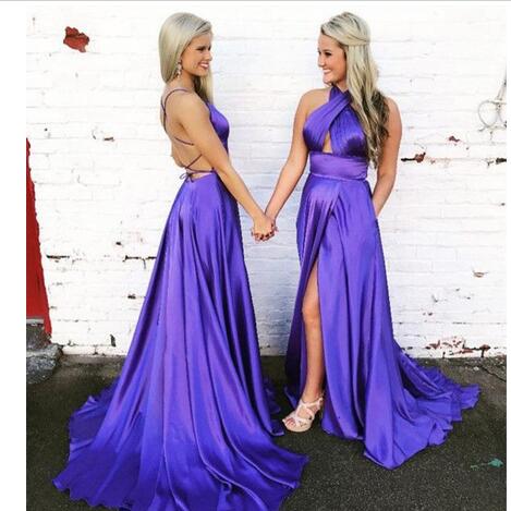 New 2018 Long Sweep Side Split Sexy Prom Dresses Halter Keyhole Neckline Vestidos De Festa Open Back Sleeveless Evening Gowns