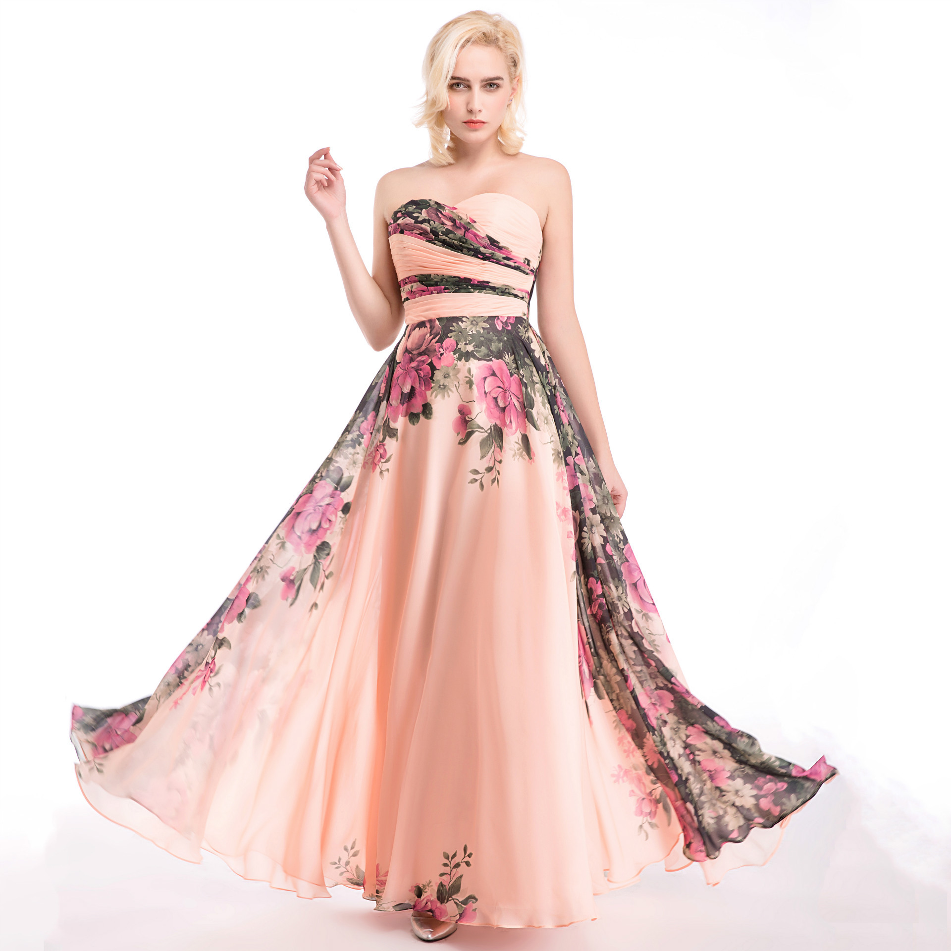A Line Chiffon Print Floral Prom Dresses Sweetheart Evening Formal Gowns