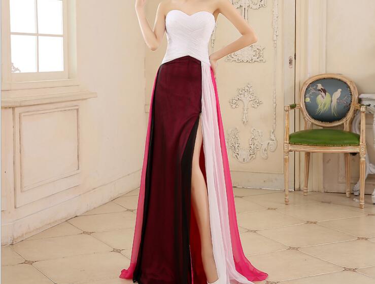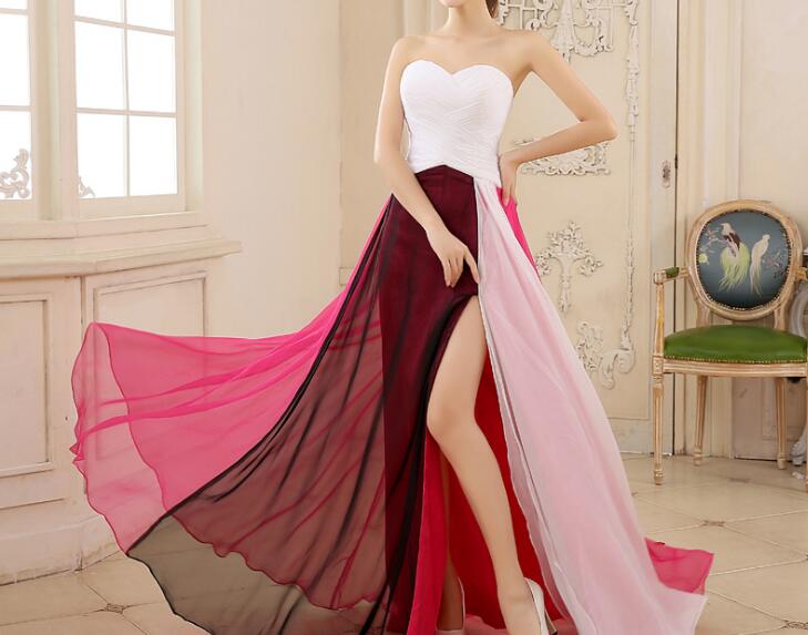 2018 A Line Chiffon Prom Dresses Sweetheart Side Slit Evening Formal Gowns