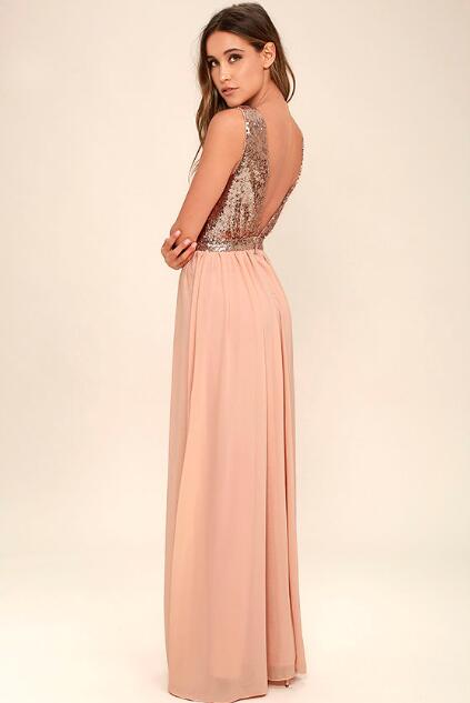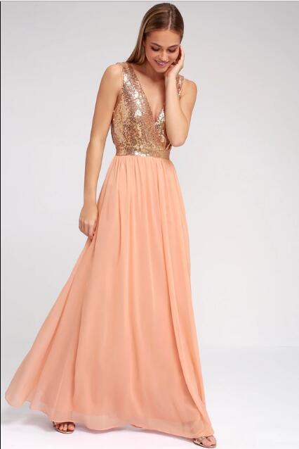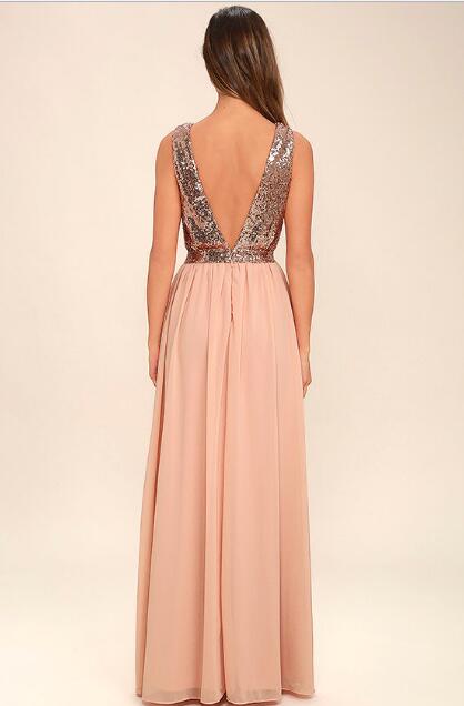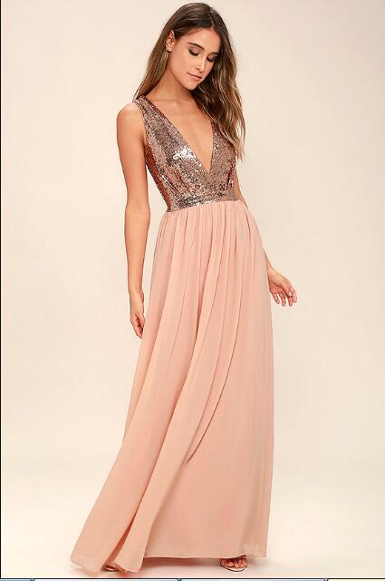 Elegant Rose Gold Prom Dress, Deep V-neck Prom Dress, Long Prom Gown Evening Dress