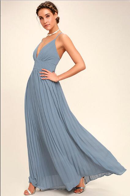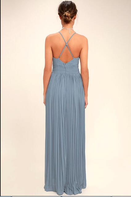 Sexy Dusty Blue Prom Dress, Deep V-neck Prom Dress, Crisscross Back Chiffon Prom Dress, Evening Dress Formal Dress