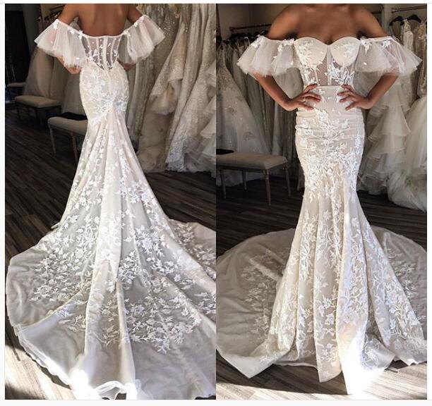 Sexy Mermaid Wedding Dresses Sheer Neck Satin Unique Long Bridal Gowns Vestidos De Noiva