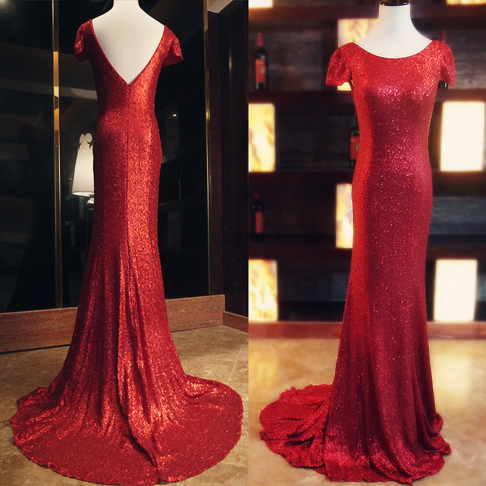 Sexy Sequins Prom Dress, Cap Sleeve Long Prom Dresses, Mermaid Evening Dress