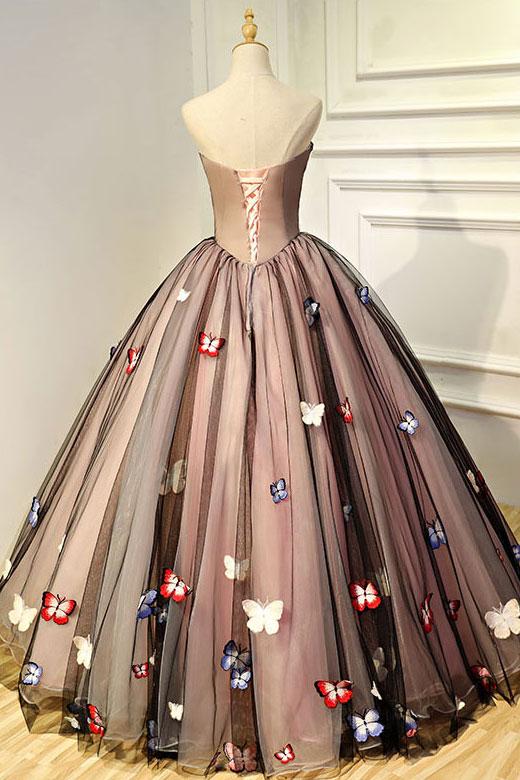 Tulle long 3D flower formal prom dress, appliques long evening dresses