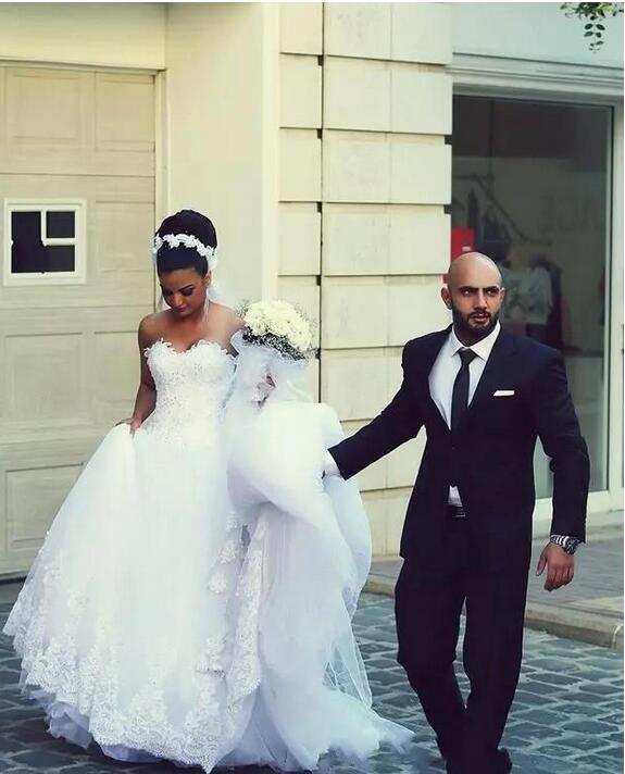 Hot Sale Sweetheart Neck A-line Wedding Dresses Lace Floor-length Lace up Back Tulle Wedding Gowns Bride Dresses