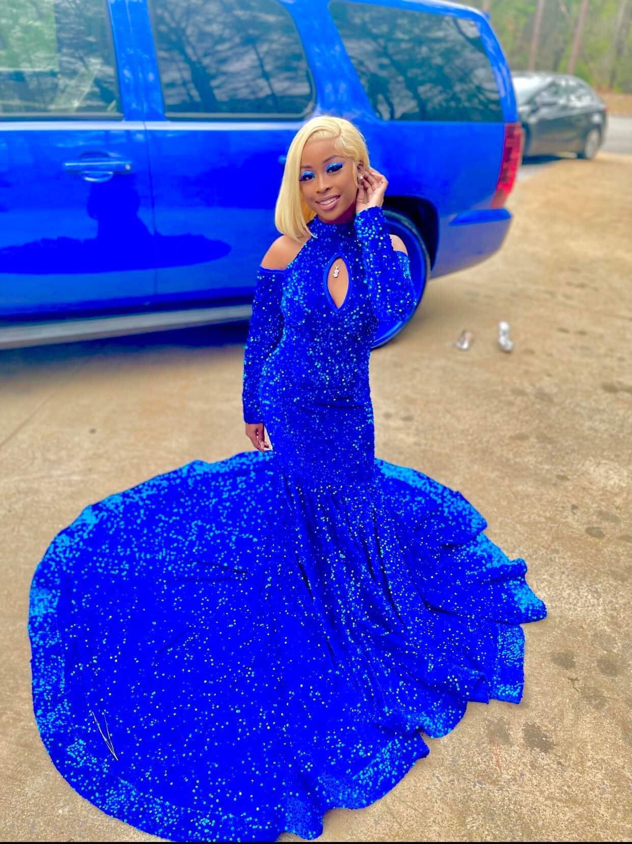 Royal Blue Mermaid Sequins Lace African Prom Dress Evening Dress