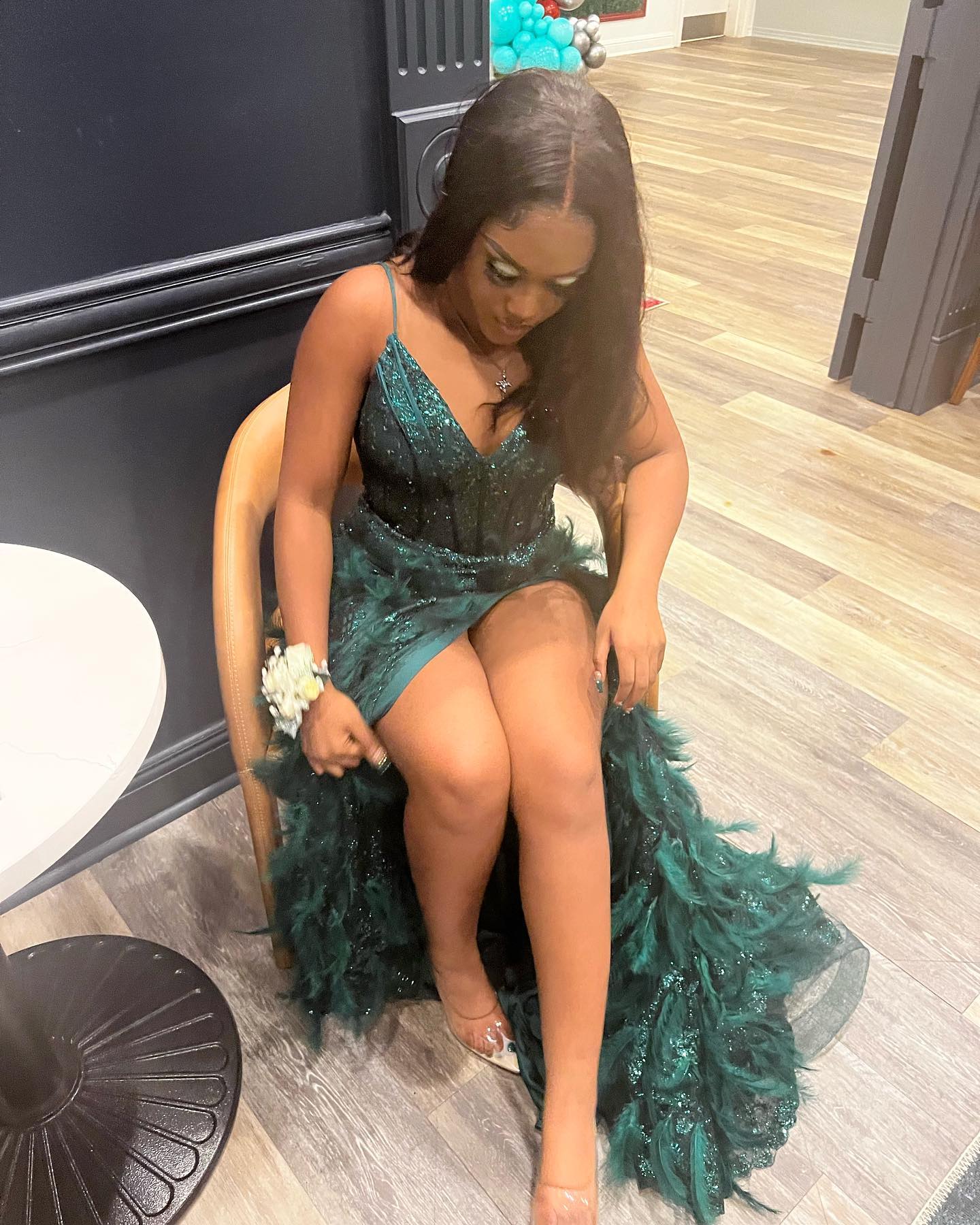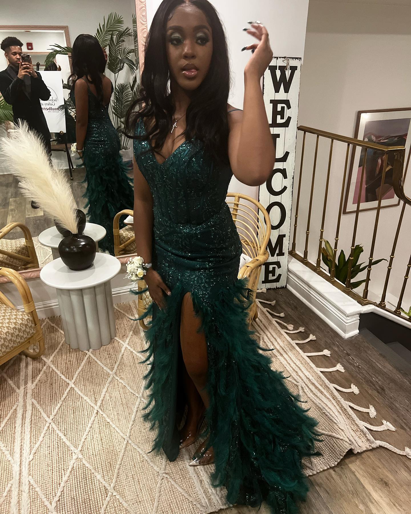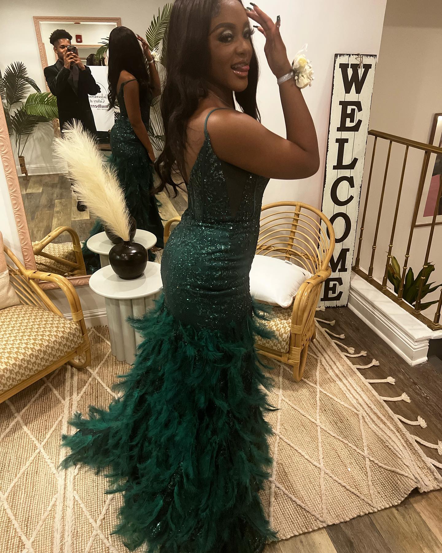 Green Mermaid Beaded Sequins Feathers Afrcian Prom Dress Evening Dress