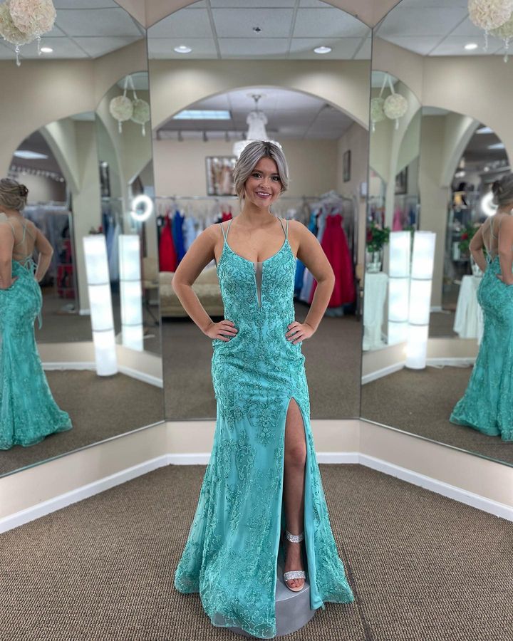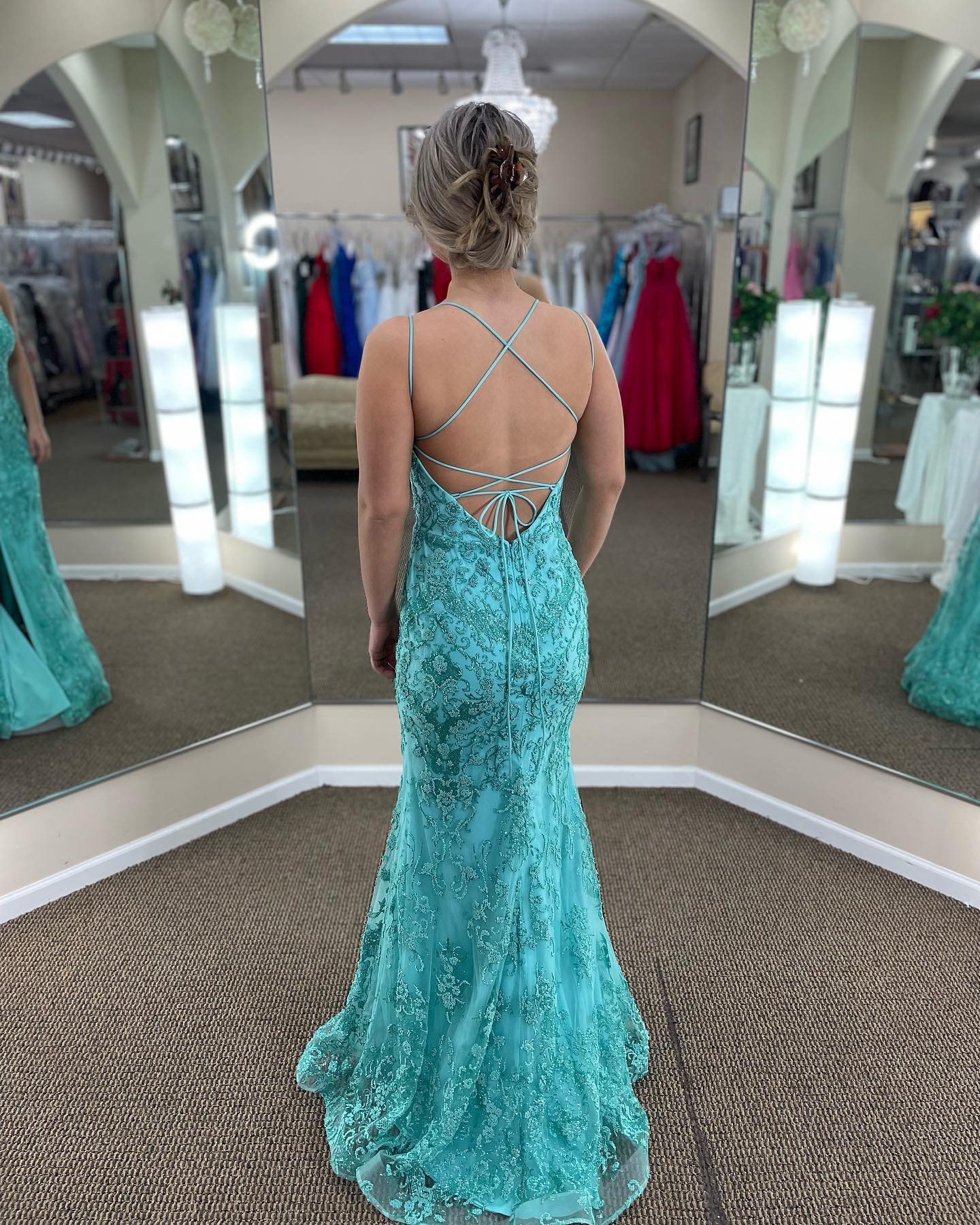 Green Mermaid Lace Appliques Prom Dress Evening Dress