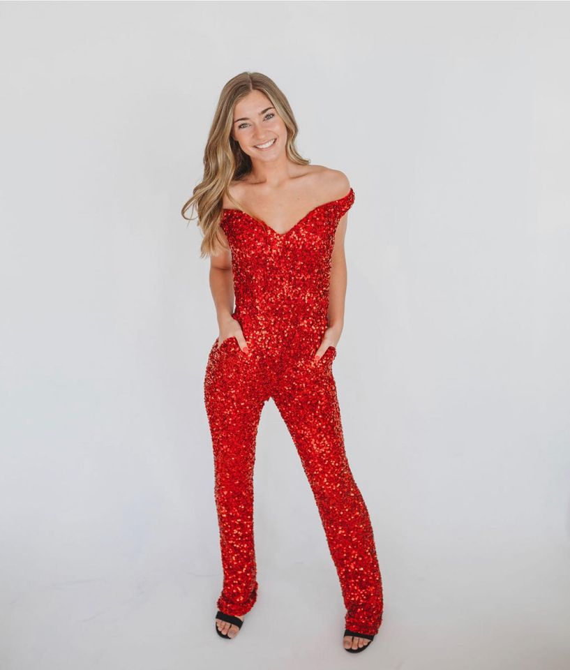 Red Sequins Lace Jumpsuit Prom Dress Evening Dress