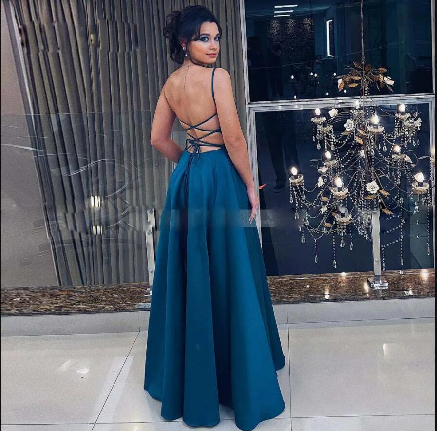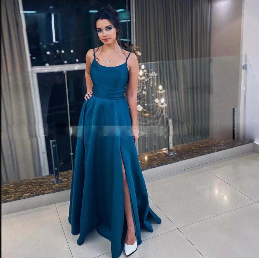 Turquoise Corset Back Prom Dresses Spaghetti Strap Sexy Homecoming Dress Satin A Line Prom Gowns