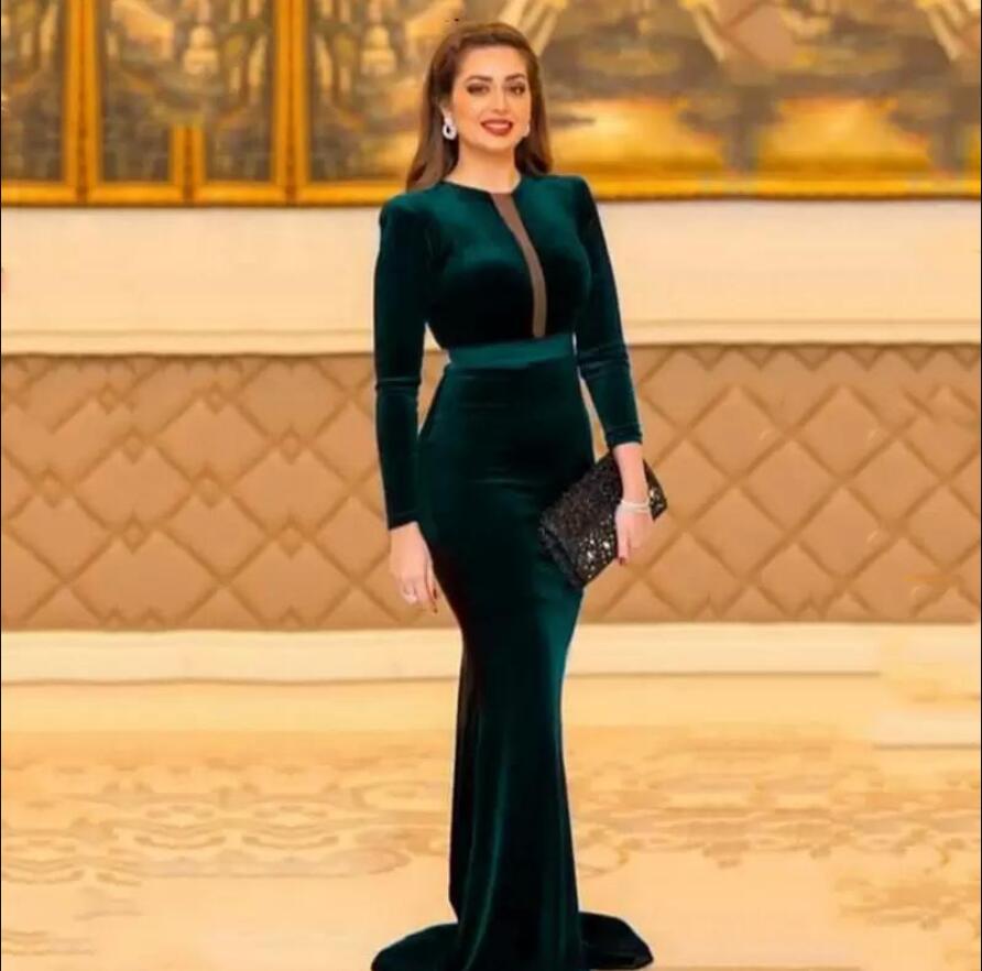 Dark Green Muslim Dubai Mother of the Bride Dresses Jewel Neck Long Sleeve Velvet Ribbon Sash Formal Dress Plus Size Evening Gowns