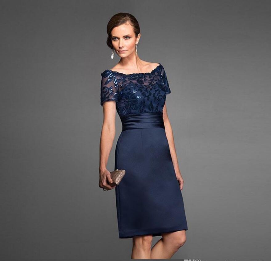 Navy Blue Mother Of The Bride Dresses Elegant High Quality Knee Length Short Wedding Party Gown