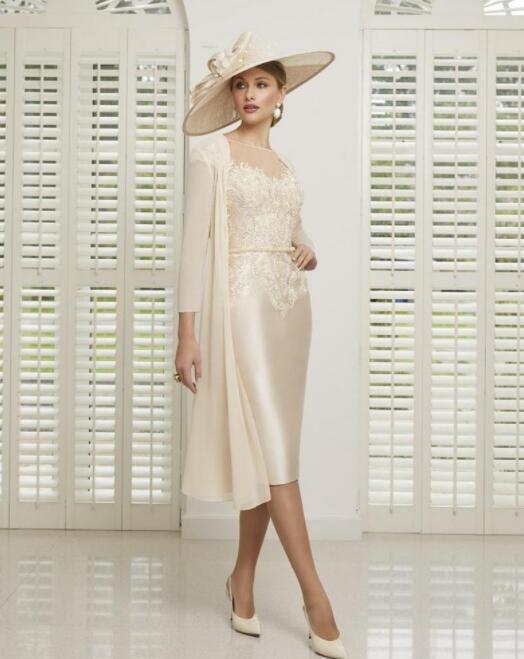 Two Piece Mother Of The Bride Dresses Neck Appliqued Beaded Sash Wedding Guest Gowns Short Sleeves Knee Length Mother Gown
