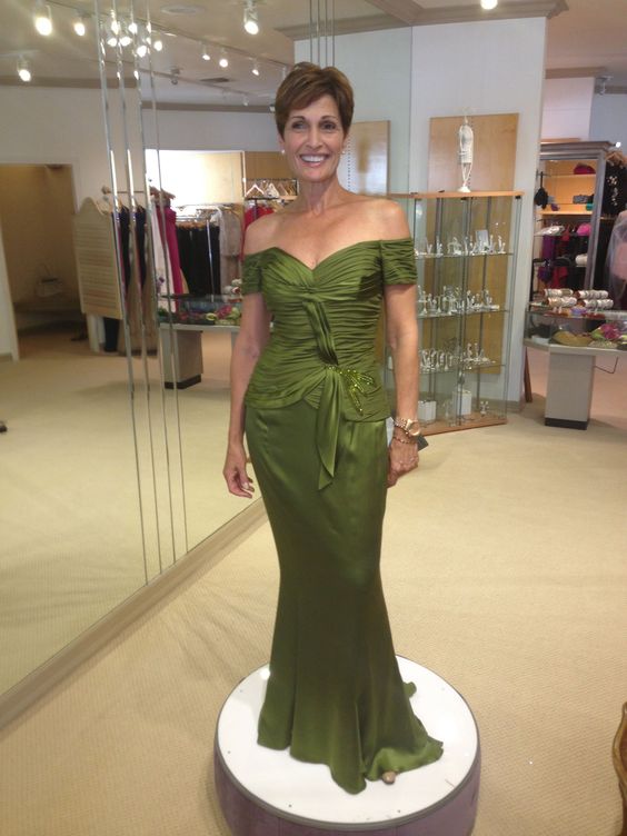 Simple Sheath Olver Green Off the Shoulder Mother Of Bride /Groom Dresses