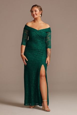 Green Sheath Long Sleeve Plus Size Lace Mother Of Bride /Groom Dresses
