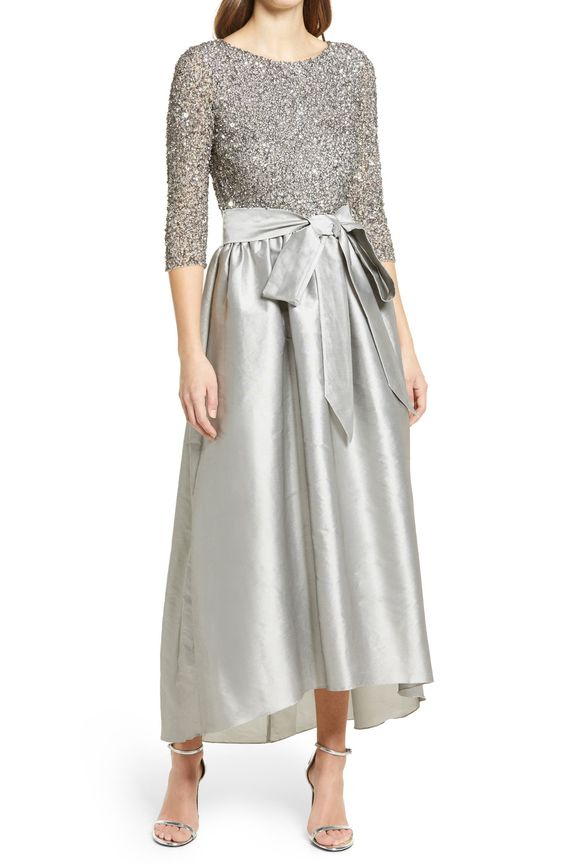 Silver Hilo Lace BodiceTea-length Mother Of Bride /Groom Dresses